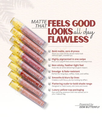 A weightless filler-effect matte lipgloss lipstick that delivers intense color, smooth coverage, and long-lasting comfort. Dew Butterfly’s signature formula gives fuller-looking lips with a soft matte finish—without dryness.