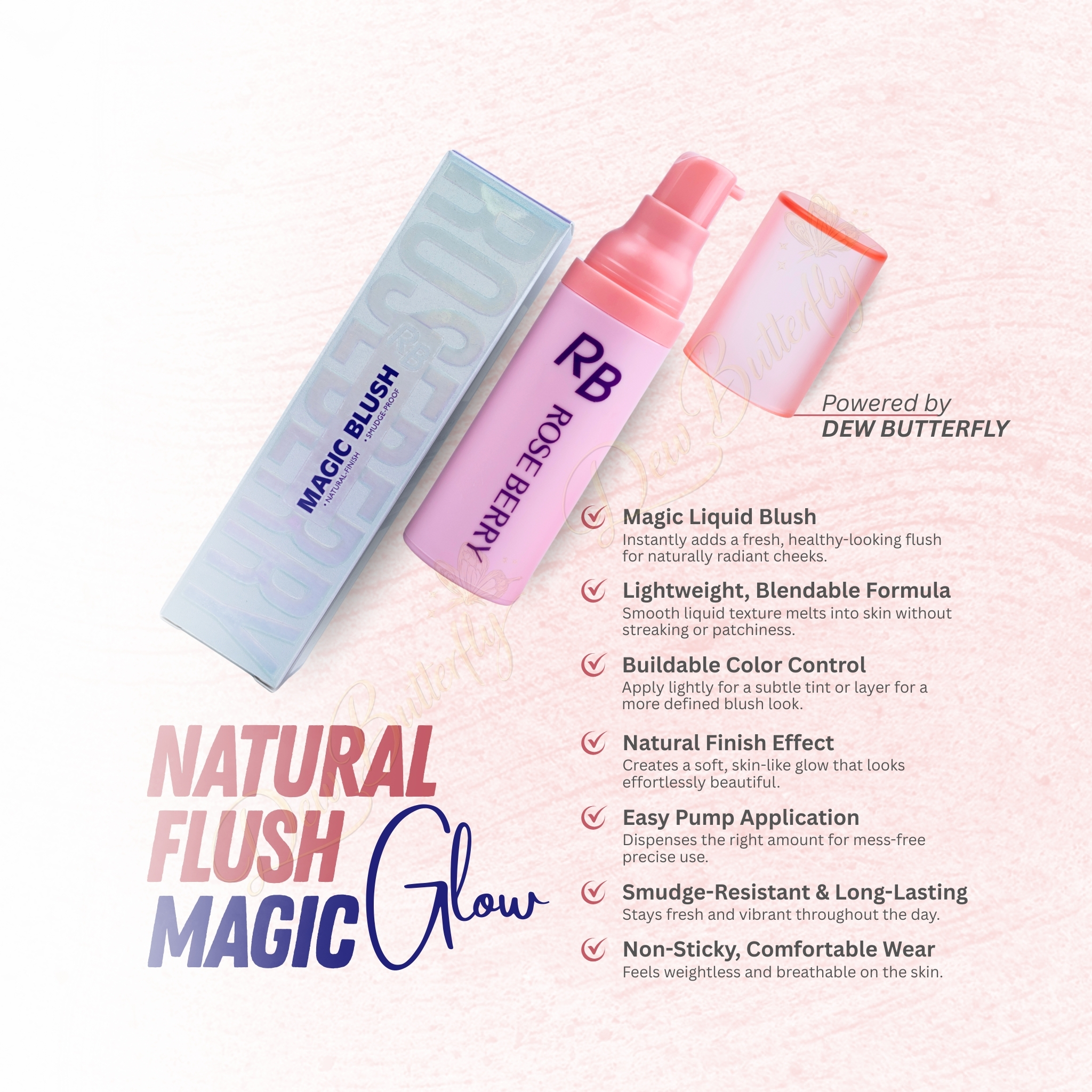 Roseberry Magic Blush delivers a natural, radiant flush with a soft, silky texture that blends effortlessly for a fresh, glowing look.