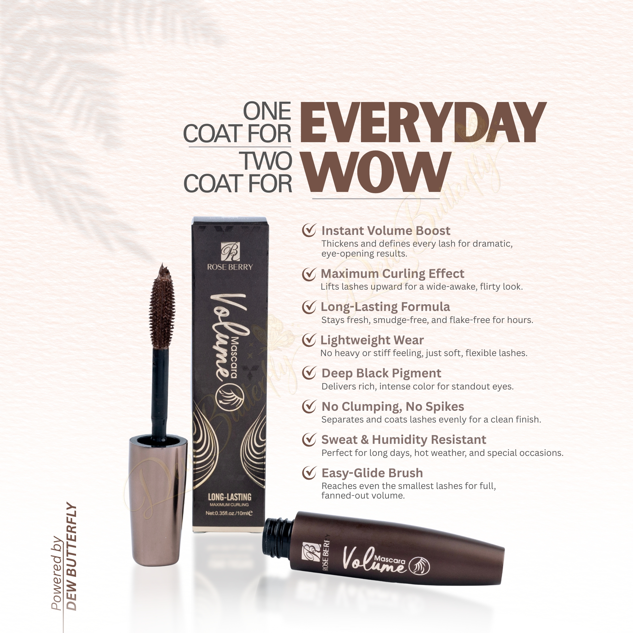 Roseberry Premium Brown MascaraĀ enhances your lashes with rich brown color, adding natural volume, length, and definition for a soft, everyday look.